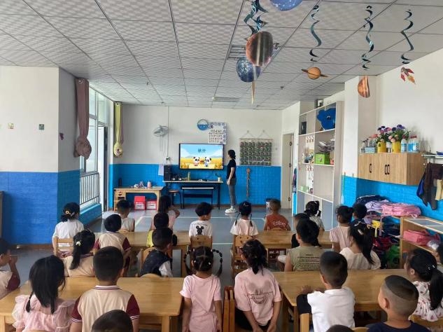 课堂上,老师通过图片、视频,向孩子们介绍秋分,比如“秋分这天白天和黑夜一样长”“秋天是收获的季节”,帮助幼儿理解节气特点。