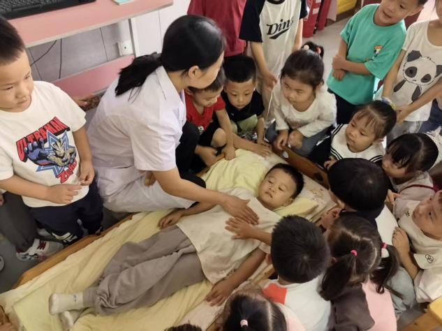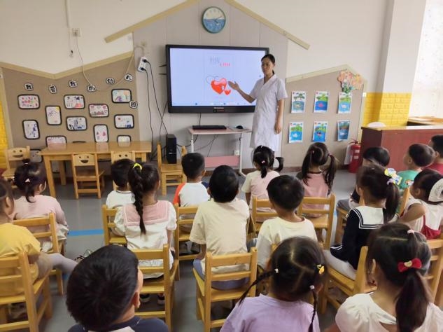 保健医通过绘本故事、动画片段等形式,向孩子们讲解心脏的位置、形状和基本功能。比如用“心脏像一个勤劳的小水泵,每天不停地跳动,为身体输送营养”这样生动的比喻,帮助幼儿理解心脏的重要性。