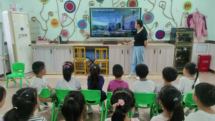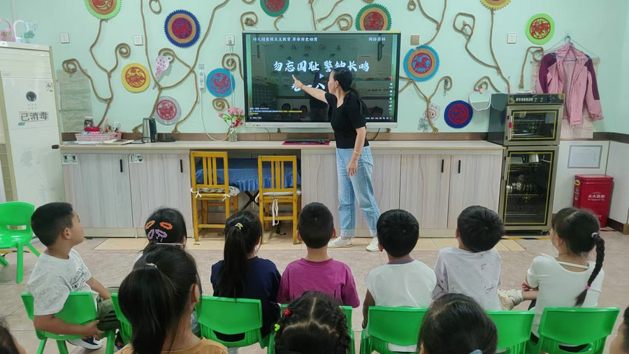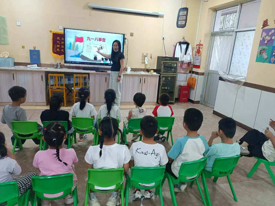 活动中,教师们结合幼儿年龄特点,通过绘本、动画短片等形式,用浅显生动的语言向孩子们讲述“九一八”事变的历史背景,分享抗日小英雄的故事。孩子们认真聆听,在互动问答中表达对英雄的崇敬之情。