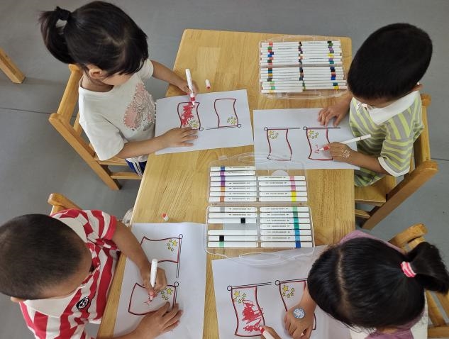 随后,各班还开展了形式多样的互动活动:小班幼儿用彩笔描绘“我爱五星红旗”,中班幼儿制作简易“和平鸽”手工作品,大班幼儿则跟着老师学唱红色童谣。老师们结合活动,引导孩子们懂得要珍惜当下、热爱祖国、好好学习。