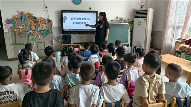 中班的活动则充满了欢快的节奏感。各班组织幼儿学唱《网络安全拍手歌》——“你拍一,我拍一,网络安全要牢记;你拍二,我拍二,不把密码告外人……”朗朗上口的歌词配合轻快的拍手节奏,将“不轻信陌生人”、“不乱点链接”、“控制上网时间”等复杂的安全守则转化为易于传唱和记忆的儿歌。孩子们在欢唱和互动中,轻松地将正确的网络行为规范内化于心,外化于行,活动现场气氛热烈。