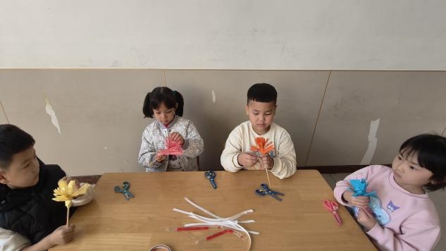 为了给家里的长辈准备节日礼物,孩子们在老师的指导下开展了手工制作活动。有的小朋友拿起画笔,在画纸上认真地画着菊花和长寿面,用鲜艳的色彩表达对老人的祝福;还有的孩子专注地做着纸花,将一张张彩纸折成漂亮的花朵,准备送给爷爷奶奶。整个活动室里充满了孩子们忙碌的身影,大家都希望用自己的小手制作出最特别的礼物。