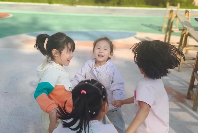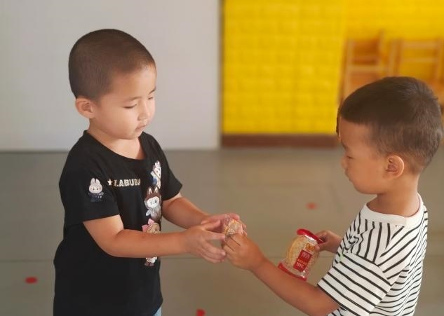 幼儿园还通过趣味互动游戏,让孩子们在实践中体会“和平相处”的意义。大班开展“合作搭积木”游戏,孩子们分工协作、互相帮助,共同搭建“和平城堡”,感受团结的力量;中班进行“分享小零食”活动,引导孩子们主动分享、礼貌道谢,在分享中收获友谊;小班则组织“拉手找朋友”游戏,孩子们手拉手围成圈,在音乐中互相微笑、拥抱,体验“好朋友在一起”的快乐。