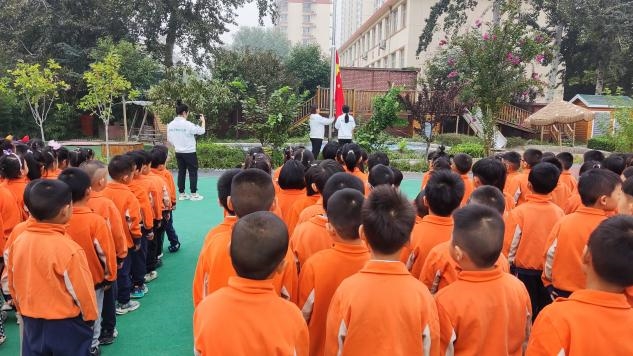 师幼举行隆重的升旗仪式,激发爱国情怀