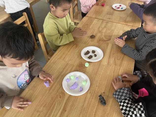 在最受期待的实践环节,各班级根据幼儿年龄特点设计了丰富多彩的活动。小班的宝贝们化身“创意小画家”,用彩笔勾勒出暖暖的围巾、厚厚的棉袄,还有自己心中热气腾腾的饺子,画面充满童真童趣;中班的孩子们动手体验“搓汤圆”,在老师的指导下,将白白的糯米面团搓成一个个圆滚滚的小汤圆,感受动手操作的快乐;大班的小朋友则参与了“包饺子”体验,虽然包出来的饺子形态各异,但每一个都承载着孩子们的用心,大家一边包一边分享,教室里满是温馨的氛围。