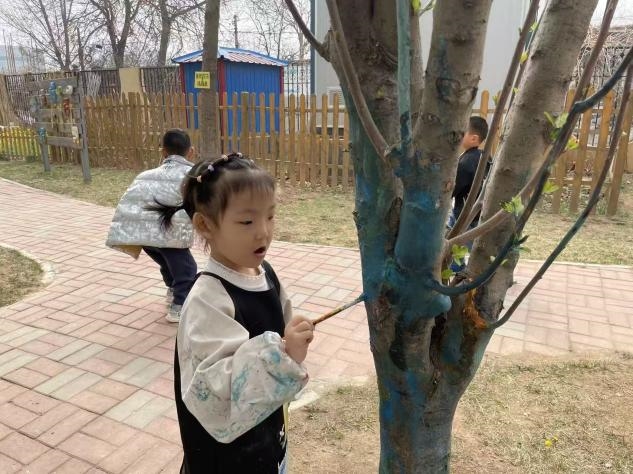 同时,孩子们开始户外创作。有的用捡到的叶子拼贴成小动物图案,有的直接在叶片上涂鸦。还有的小朋友则拿起颜料和画笔,为掉落树叶的小树穿上“新衣”。阳光洒在他们身上,画面充满了温馨与专注。这些作品不仅展现了孩子们的想象力,更成为了这个秋天最珍贵的纪念。