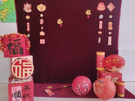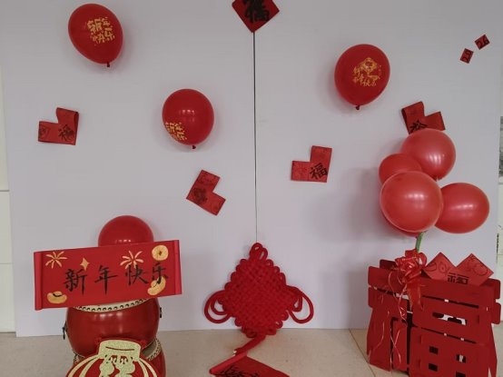 活动前期,老师们化身“创意设计师”,精心打造专属拍照场景:五彩的气球串挂满角落,红彤彤的灯笼、金闪闪的福字贴满背景板,还有小马、小兔子等卡通玩具点缀其间,每一处细节都充满新年的喜庆氛围,让幼儿一走进场地就忍不住欢呼。