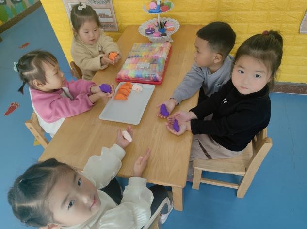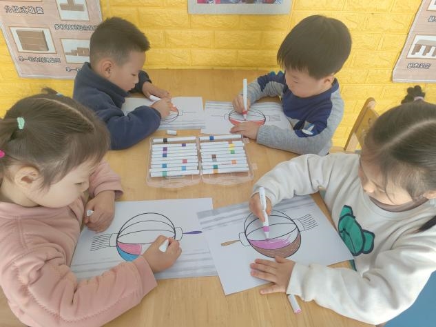 手工区里,孩子们用画笔、黏土制作冬至主题作品。老师先引导孩子们观察图片上饺子的褶皱、灯笼的造型,并且用简单的材料还原传统食物的特点。随后创作环节,有的孩子捏出可爱的“饺子”,有的孩子画出一个个好看的“灯笼”。这些手工作品被布置在教室墙上,成了冬天里最温暖的装饰。这样的活动,让冬至不仅是一个节气,更成了孩子们心中关于“温暖”与“传统”的鲜活记忆。