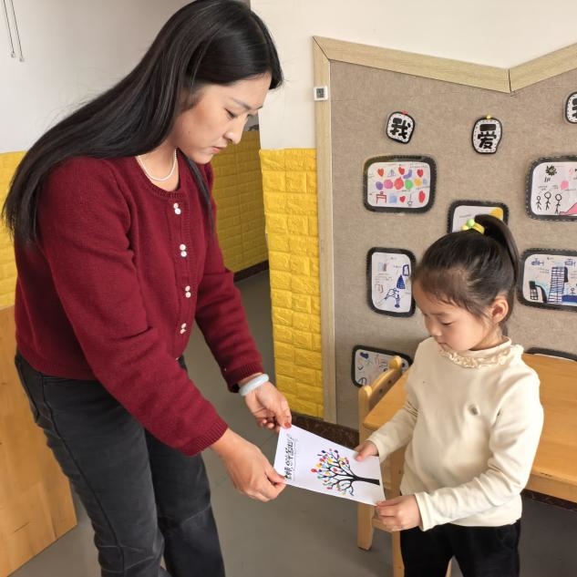 活动中,老师们通过绘本故事《谢谢你,小苹果》《我爱爸爸妈妈》,用幼儿易懂的语言讲述感恩的意义,帮助孩子们理解家人、老师的付出。在手工环节,孩子们化身“小小创作者”,用彩纸、黏土制作出一张张稚嫩的“感恩贺卡”,有的画上笑脸送给爸爸妈妈,有的做成感恩树送给照顾自己的老师,每一份作品都充满童真与心意。