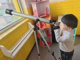 活动前,教师团队根据不同年龄段幼儿的发展特点,精心创设了角色扮演区、科学探索区、图书区、建构益智区、小厨房、娃娃家五大主题区角,并投放了层次丰富、趣味十足的活动材料。角色扮演区里,建构区小医院、娃娃家等场景一应俱全,幼儿们化身小医生,分工合作、认真投入,在沉浸式的模拟游戏中锻炼语言表达与社会交往能力;科学探索区中,放大镜、望远镜、地球仪等材料吸引着孩子们的目光,他们或两两一组观察望远镜的奥秘,了解地球仪的省份一双双小眼睛里满是好奇与专注;娃娃家宝贝在学玩过家家有妈妈角色,爸爸角色,宝贝的角色;当建构益智区里,积木、搭建玩具成为孩子们的 “魔法道具”,他们时而搭建高耸的城堡,时而拼出长长的轨道,在动手动脑中培养空间思维与合作意识。活动过程中,教师们始终以观察者、引导者、合作者的身份陪伴在幼儿身边,及时捕捉孩子们的精彩瞬间,在幼儿遇到困难时适时给予启发与帮助,鼓励他们大胆尝试、自主解决问题。孩子们在自主选择区角的过程中,不仅提升了动手操作能力,更学会了分享与合作,在轻松愉悦的氛围中收获满满。
