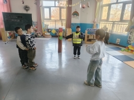 “我是小警察”的角色扮演环节,更是将活动推向高潮。幼儿轮流穿上警服道具,分组体验“指挥交通”(用信号灯卡片指引同伴“过马路”)和“帮助他人”(帮助迷路的孩子找到家长”)。