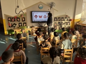 课堂上,教师讲解剪纸文化