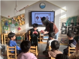 幼儿在教师引导下观察剪纸作品