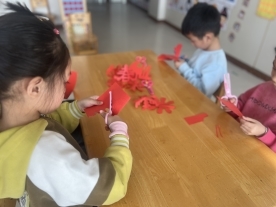 幼儿们动手自由剪裁,感受剪纸的魅力
