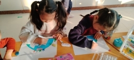 课堂上,幼儿通过创作宣传垃圾分类知识