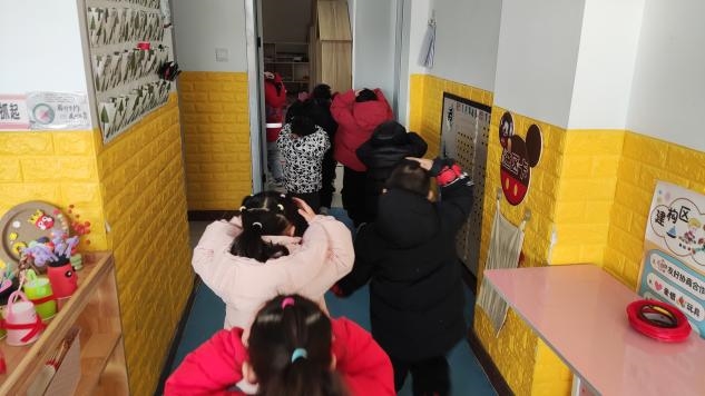 下午15时,随着防震警报信号的响起,演练正式开始。各班教师立即停止教学活动,按照预定方案,迅速组织幼儿双手抱头、弯腰低头,躲在课桌、墙角等安全区域进行紧急避险,避免头部受伤。待“主震”过后,第二次警报声响起,教师们有序引导幼儿按照指定疏散路线,弯腰、护头、快速前行,避开拥挤和踩踏风险,向操场等开阔安全区域疏散。整个疏散过程中,教师们全程陪护,耐心安抚幼儿情绪,提醒幼儿不推挤、不慌张、听指挥。
