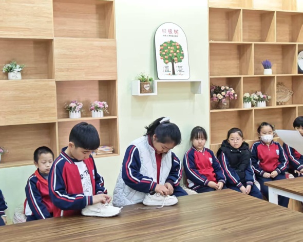 本次比赛结合学生年龄特点,设置了贴合日常生活的竞赛项目。低年级开展整理书包、系鞋带比赛,叠被子,小选手们动作麻利,快速将书本文具分类摆放,小巧的双手灵活系出整齐的蝴蝶结;中年级进行叠衣服、缝纽扣比拼,同学们认真细致,衣物叠得方方正正,针脚均匀工整;高年级则挑战水果拼盘、择菜项目,大家分工协作,创意满满,尽显生活小技能。比赛现场秩序井然,同学们全神贯注、奋勇争先,在实践中感受劳动的乐趣。