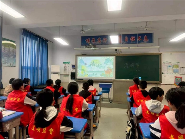 1. 主题班会课:各班级召开“缅怀革命先烈传承红色精神”主题班会。班主任通过播放革命先烈纪录片、讲述英雄故事、分享清明传统习俗等方式,让学生了解清明节的历史渊源、文化内涵,以及革命先烈的英勇事迹。班会中设置讨论、分享环节,学生们积极交流感悟,深刻体会今天幸福生活的来之不易,爱国主义情感在潜移默化中得到升华。